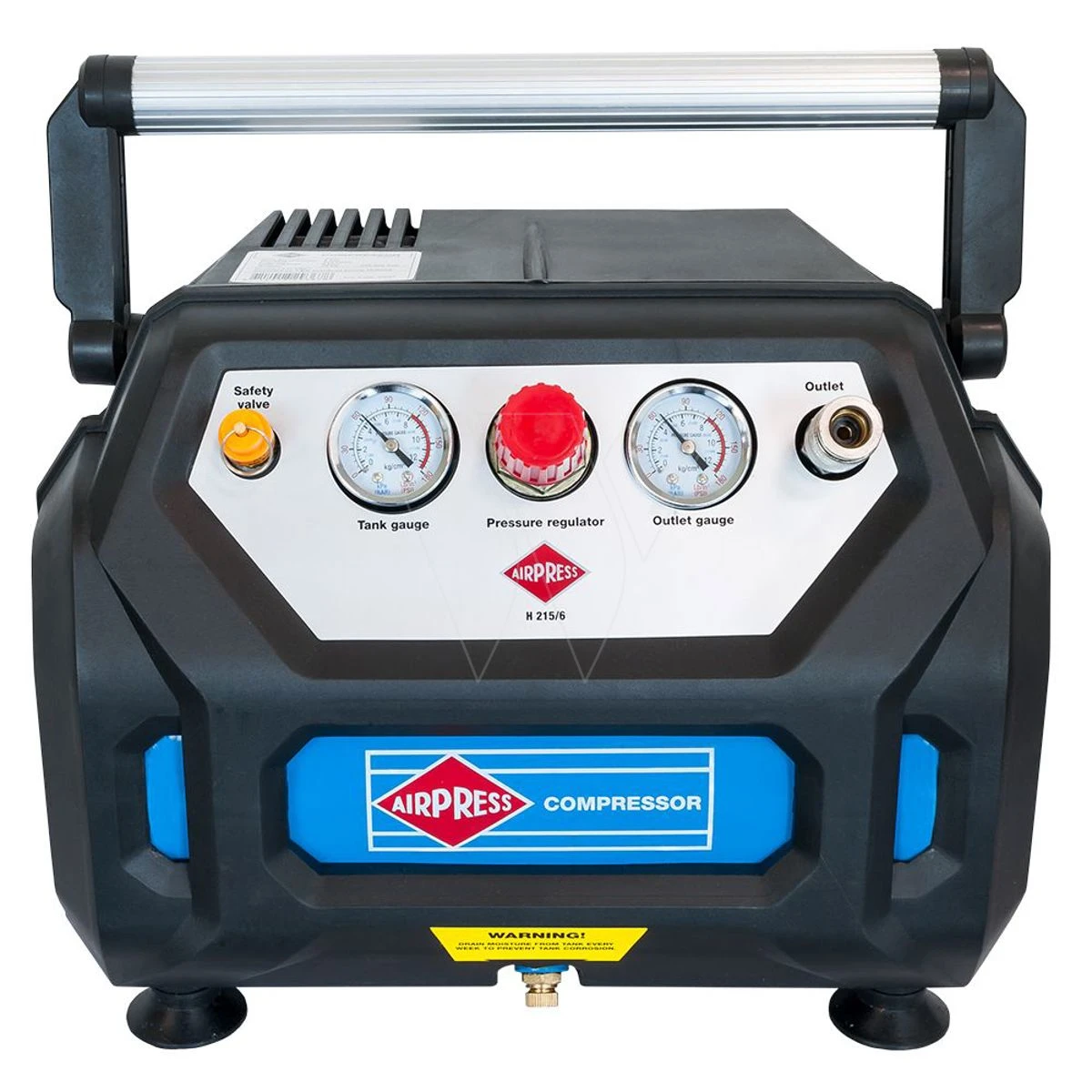 Omdat deze compressor olievrij is, is het onderhoud slechts beperkt tot een paar aandachtspunten. Het condenswater in het drukvat moet regelmatig afgetapt worden om corrosie te voorkomen. Verder is het advies het luchtfilter regelmatig te controleren en schoon te maken of periodiek te vervangen. Uiteraard wel afhankelijk van het gebruik en de vervuiling. Let er wel even op dat het luchtfilter van de H215-6 binnen in de behuizing zit en hierdoor niet direct bereikbaar is.