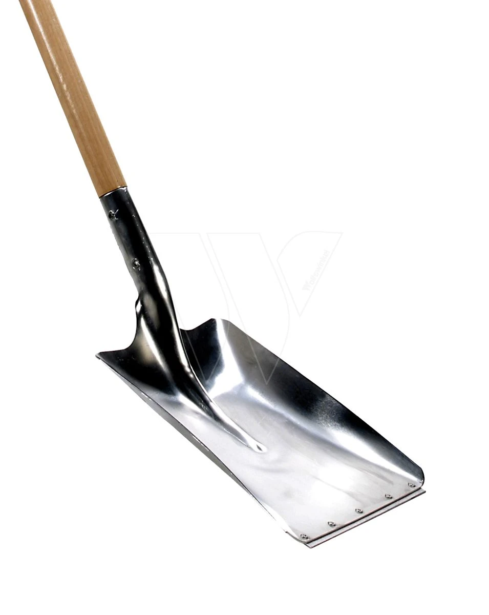 Deze aluminium schop is geschikt voor het tillen van zeer lichte materialen. Met de rechte snede kan goed in het “lichte” materiaal geduwd worden. Het is echter niet de bedoeling dat de schop met kracht in een berg stevig materiaal geduwd wordt. Deze schop is voorzien van een steel van 85cm met een Kunststof D-handvat. De afmeting van het blad is 330x280mm. Het blad is voorzien van een slijtstrip, waardoor het blad zelf minder snel slijt.