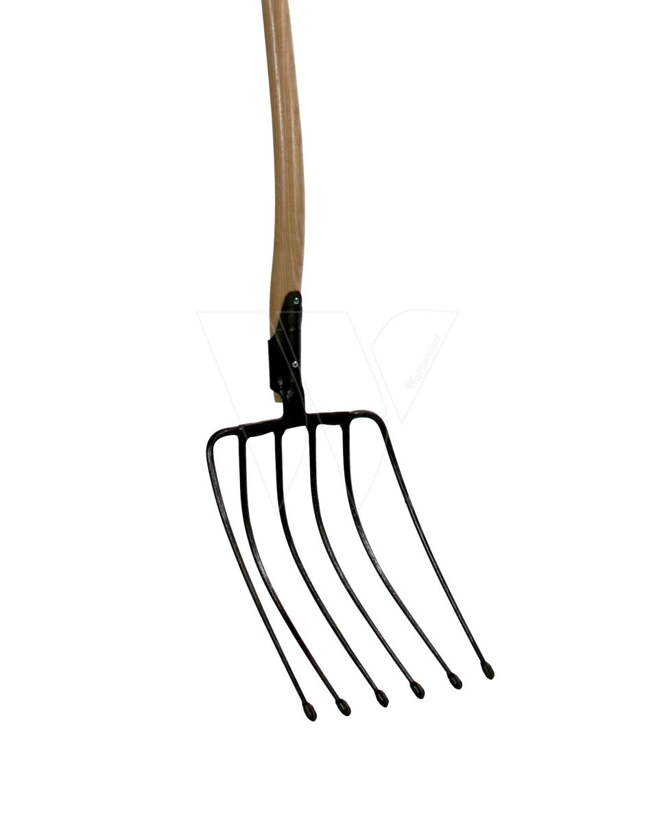 Deze bietenvork met 6 tanden is geschikt voor het verplaatsen van bieten, mest en tuinafval. De vork is voorzien van een 85cm steel een een D-greep. De vork zit doormiddel van een vaste veer verbonden aan de steel, dit zorgt voor een sterke verbinding. De twee buitenste tanen zijn in tegenstelling tot de andere tanden niet gebogen maar recht, hierdoor blijft het materiaal beter op de vork liggen. Het verschil tussen een bietenvork en een maisvork is dat de tanden bij een maisvork dichter bij elkaar staan en dat de bietenvork aan het eind van de tanden een bolle punt hebben zodat ze niets kunnen beschadigen. Bij het gebruik van deze vork buigt u uw knieën, niet uw rug! Daarna duwt u de vork in de berg afval/mest en neemt zoveel op als mogelijk is zodat u het dan op de door u gekozen plek kunt deponeren. Bij zwaarder materiaal raden we u aan niet teveel materiaal op de vork te nemen, dit is een behoud voor uw vork, schouders, rug en knieën.