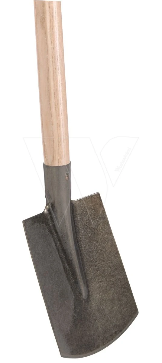 Deze spade is geschikt voor lichte verplantwerkzaamheden in zand en aarde. Het blad van de spade dient recht of bijna recht tot de rand in de grond te worden gestoken. Dan trek je de greep bij de schacht naar achteren om de grond los te werken. Als je de juiste lengte van de steel hebt uitgezocht sta je hierbij recht op. Buig dan je knieën en til nu de schuin staande spade met grond op door je knieën weer te strekken. Het buigen van de knieën is belangrijk voor het sparen van je rug. Deze spade is voorzien van een licht gebogen steel van 85cm met een kruk. De afmeting van het blad is 250x180mm.