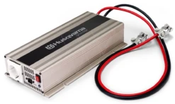 Deze 12V omvormer naar 230V kan totaal 600 Watt aan.