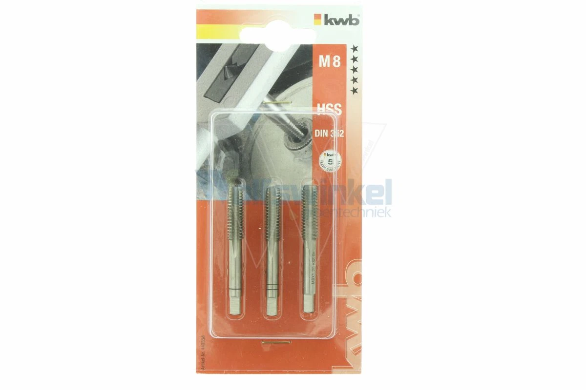 Het betreft hier een kwb hss handtappenset m 8 3-delig , dit is een origineel product van Kwb. Met het artikelnummer 443308.