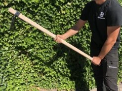 Deze hak is geschikt voor het verwijderen van zwaar onkruid met name in kleigrond, zonder dat u de wortels van de omliggende bomen en planten beschadigt. Een hak moet u niet duwen, maar juiste de hak naar u toe halen. Deze hak is zwaarder en groter dan een hak die gemaakt is van verzinkt staal. De maat van het blad is 20cm lang 14cm breed. Bij het gebruiken van de hak wijzen u duimen naar het blad. Het blad van de hak moet een kleine hoek met de grond maken, bij een te grote hoek gaat het blad te diep de grond in en blijft het vastzitten. Aan deze hak zit een steel van 130cm.
