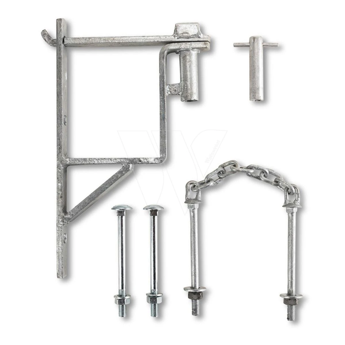 Deze slagboomsluiting set is compleet met ketting, vangbeugel, driekantsleutel en montagebouten.